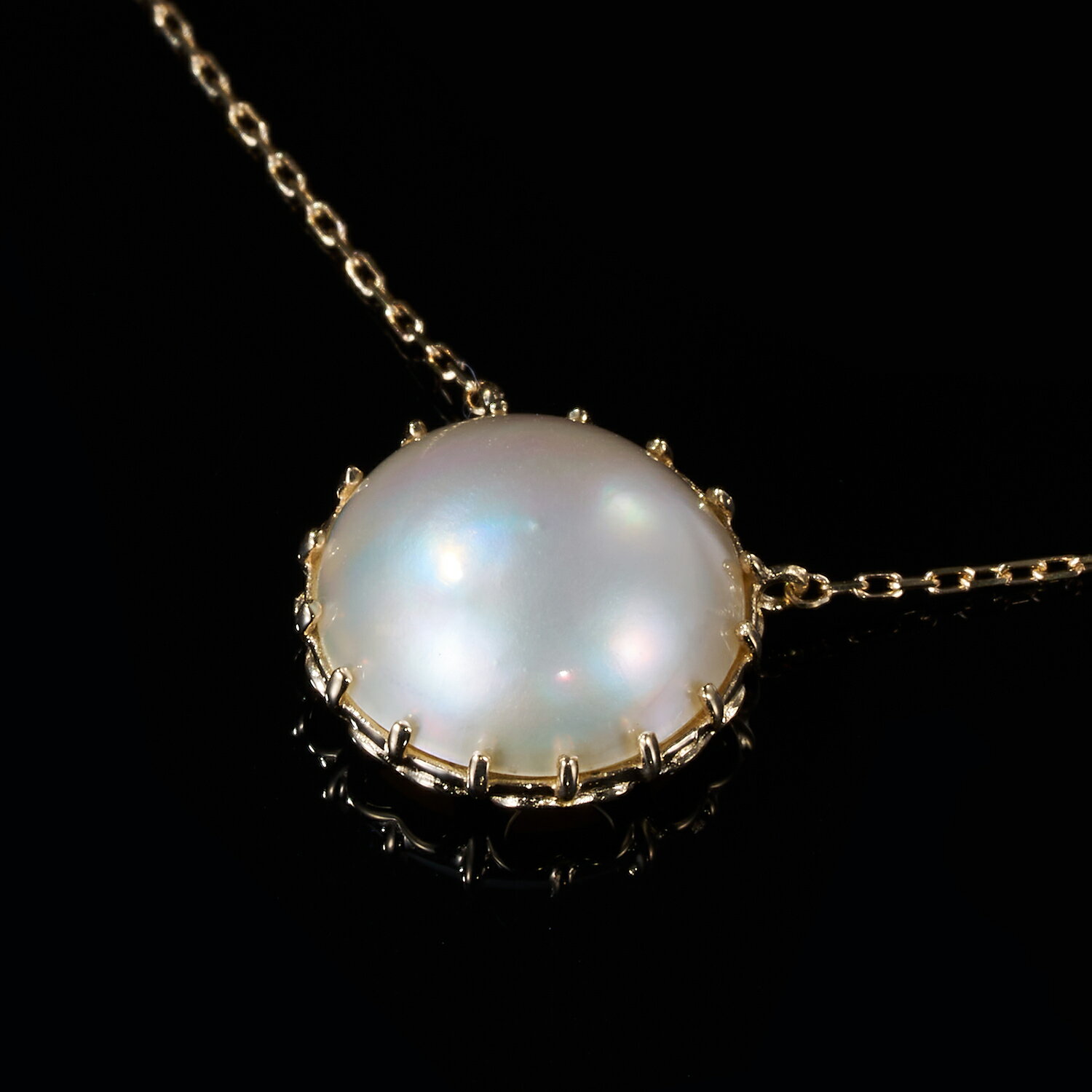 石 マベパール(マベ真珠) 材質 K10ゴールド 大きさ マベパール 直径9mm チェーン K10ゴールド ケーブルチェーン 0.5mm×40cm 留め具 引き輪式 品番 P1670004 お届けする商品について 商品写真はできる限り実物の色に近づくよう補正調整を施しておりますが、デバイスや照明等の環境により、実物とお色味が異なる場合がございます。宝石にはそれぞれ個性があり、お色味の濃淡や多少の傷や内包物がございます。また、ひとつひとつハンドメイドで仕上げているため、お色味や形状などが写真とは、また左右で若干異なる場合もございます。(大変申し訳ございませんが、個別でのご指定はいただけません。ご了承くださいませ。)奥深い照りをもつ、上質な一粒 マベパール×K10ゴールドネックレス・プレンティーナ この大きさに、ひとめぼれ! こぼれ落ちそうなほど大粒のマベパールをクラシカルな台座にのせた、絶妙のバランス! 今までにはないとっておきの、おしゃれなマベパールジュエリーをお作りしました。 マベパールとは、マベ貝を母貝とする真珠のことで、半円の形をしています。 キメが細かく、オーロラのように神秘的な輝きを放ち、上質で貴重なものとされています。 真珠本来の美しさを楽しむなら「マベパール」はぜひひとつは持っていたいものです。 私だけが知る、秘密のかわいさを忍ばせて マベパールそのものの美しさを引き立たせるため、表から見た時はごくシンプルに。 そのかわり、枠の裏側に優美なデザインを忍ばせました。太陽のような図案ですが、よくみるとハートが並んでいるんです...! 自分だけが知るし細部のこだわりが、おめかし気分を一層盛り上げます。 つけてみると... 柔らかな半円がデコルテにフィットして、すっきりした印象に。 このフラットな部分が肌に馴染み、つけ心地も抜群です! どんなシーンにもベストマッチするから、おでかけからパーティー、結婚式や卒業式入学式まで、1本で幅広くオールマイティーにつかえますよ。 マベパールとは? マベパールとはマベ貝を母貝とする真珠で、半円形をしています。 マベ貝の真珠層はキメが細かく上質で、真珠の中でも貴重なものとされています。 マベパールは貝殻の内側に核を装着するので、大きな粒が取れることも特徴。 また、通常の真珠は調色加工を施すことによってパールの美しさと輝きを出していますが、マベパールは調色加工をしなくても美しいんです。まさに自然の生み出す美! 人の手を加えていない自然の美しさを楽しめるマベパールは、日本の女性皇族が愛用していることも知られています。 マベパールのテリや輝きをぜひお確かめください。 おそろいのリングはこちら せっかくのマベパールなので、おそろいのリングもご用意しました。 マベパールは1つだけでもたっぷり存在感がありますが、2つ合わせるとより華やかさがアップ! コーディネートがグッと格上げされますよ。 石 マベパール(マベ真珠) 材質 K10ゴールド 大きさ マベパール 直径9mm チェーン K10ゴールド ケーブルチェーン 0.5mm×40cm 留め具 引き輪式 品番 P1670004 お届けする商品について 商品写真はできる限り実物の色に近づくよう補正調整を施しておりますが、デバイスや照明等の環境により、実物とお色味が異なる場合がございます。宝石にはそれぞれ個性があり、お色味の濃淡や多少の傷や内包物がございます。また、ひとつひとつハンドメイドで仕上げているため、お色味や形状などが写真とは、また左右で若干異なる場合もございます。(大変申し訳ございませんが、個別でのご指定はいただけません。ご了承くださいませ。)