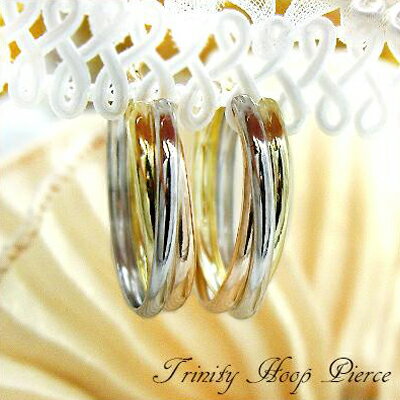 あす楽【大特価44800円税込】大きめ トリニティ スリーカラー フープピアス プラチナ900×K18 イエローゴールド ×K18ピンクゴールド 輪っか 3連リング 3カラー フープ 幅広い フープ 地金ピアス スキンジュエリー プレゼント レディース メンズ 【送料無料】