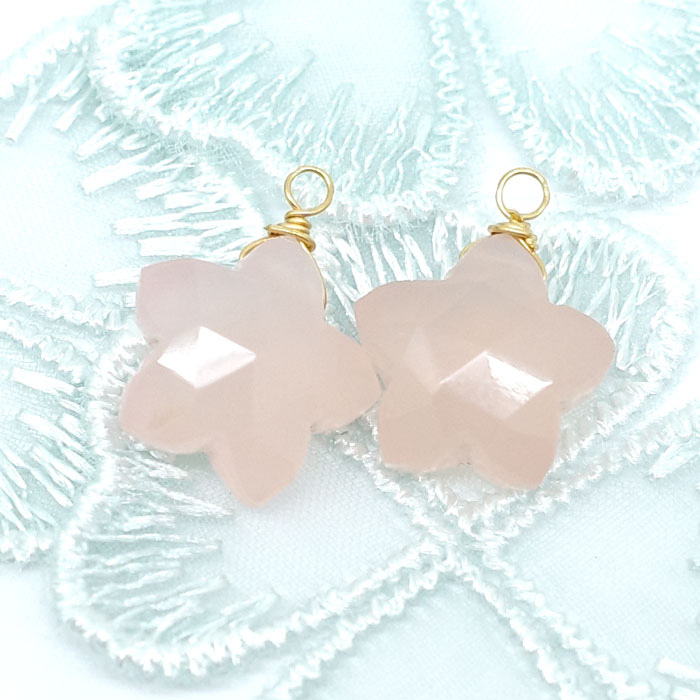 【チャーム】ピンクカルセドニー(着色あり)ピアスチャームスターカット1セット販売22金ワイヤー約10ミリ