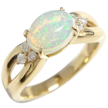 18金 オパール リング ダイヤモンド イエローゴールドk18 一粒石 指輪 中指 ミディリング 人差し指 インデックスリング 10月誕生石 アンティーク 18kレディース