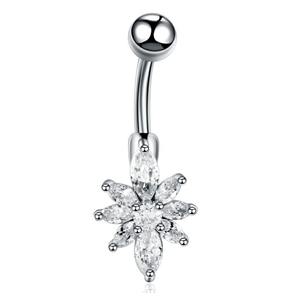 [14G ヘソピアス ボディピアス] シトフラワー へそピアス 1個販売 14ゲージ パヴェ キラキラ 花 クリスタル ジルコニア ラインストーン 臍ピアス サージカルステンレス316L ボディーピアス メンズ レディース バナナバーベル カーブバーベル プレゼント