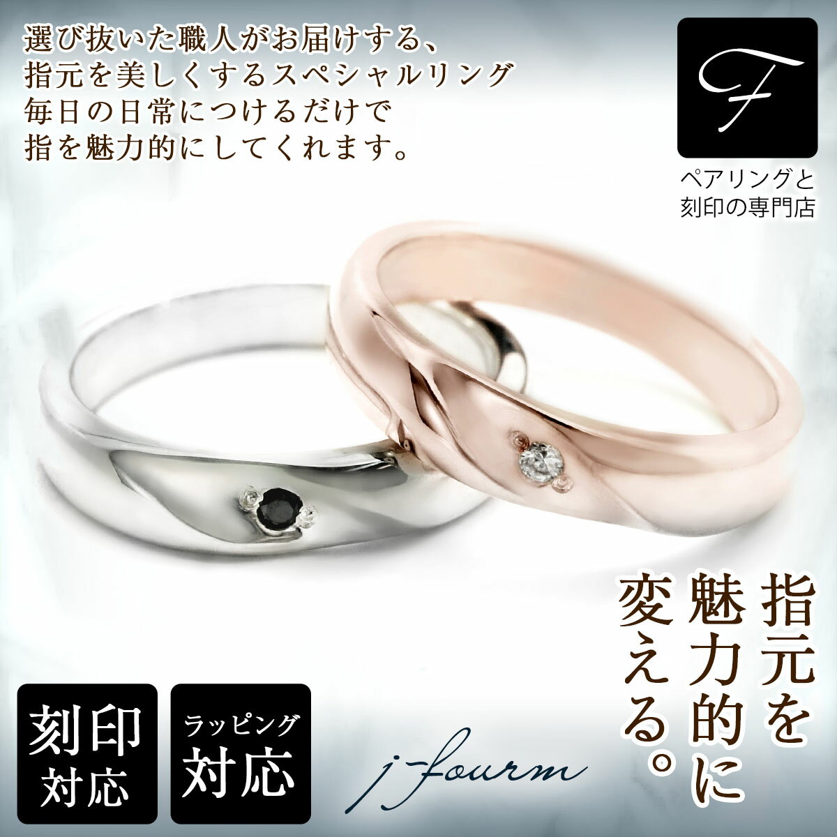 ペアリング 刻印 シンプル 天然 ダイヤモンド シルバー 925 &ピンクシルバー ウェーブリング 2個 シルバー リング 送料無料 指輪 メンズ レディース fourm クリスマス 母の日 男性 女性 ラッピング 包装 袋 誕生日 プレゼント ケース 箱 華奢 大きいサイ