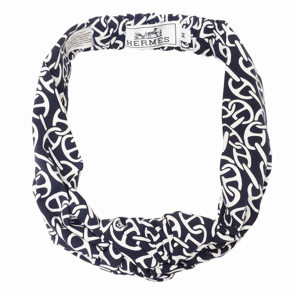 HERMES エルメス シェーヌダンクル柄 ヘアバンド ヘッドバンド カチューシャ ガビ ナウサ アクセサリー ネイビー レディース 【中古】 /TNT