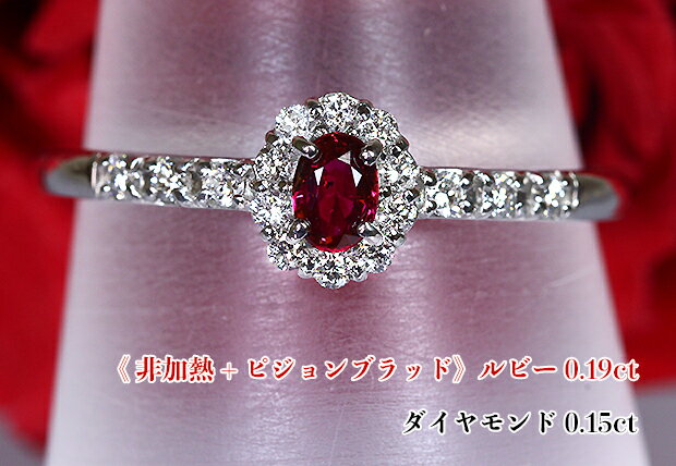 【非加熱】+【ピジョンブラッド】最強非加熱ルビー!魔性のブラッドカラー!清らかダイヤで結ぶ☆鮮やかジュエルベルト!Ptルビー0.19ct(D 0.15ct)リング【AIGS鑑別書付】