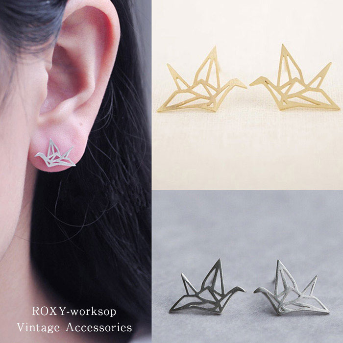 【送料無料】 折り紙 スタッドピアス 折鶴 ピアス 鳥 和風 日本 浴衣 ファッション 日本 ギフト プレゼント プチギフト 折り紙 origami 可愛い クール カッコイイ ビンテージ ガーリー 個性的 夏アクセ スチームパンク シルバー ゴールド