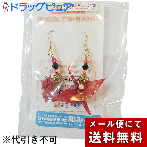 【メール便で送料無料 ※定形外発送の場合あり】一般社団法人ひととまちサポート『和みの海』 折り紙アクセサリー 和飾りピアス[鶴1000赤]1ペア<手作り 日本製><神戸の就労継続支援B型福祉事務所から世界へJAPAN origami project><千代紙>