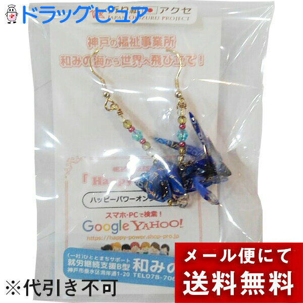 【メール便で送料無料 ※定形外発送の場合あり】一般社団法人ひととまちサポート『和みの海』 折り紙アクセサリー 和飾りピアス[鶴亀1000青]1ペア<手作り 日本製><神戸の就労継続支援B型福祉事務所から世界へJAPAN origami project><千代紙>