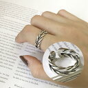 指輪 オープンリング アクセサリー レディース シルバー925 女性用 ダブル 編み込み メッシュ ヴィンテージ風 おしゃれ かっこいい 太め カジュ