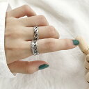リング 指輪 レディース チェーン ねじれ 編み クロス チェーン フリーサイズ 太め シルバーカラー ヴィンテージ 立体 おしゃれ シンプル カジュ