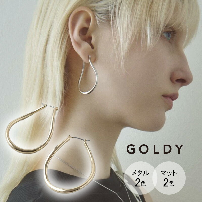 【最短翌日お届け】カーヴィー ライン ワイド フープ ピアス GOLDY ゴールディ 1250711 goldy アクセサリー レディース 女性 シルバー ライトゴールド マット 艶消し シンプル goldy ピアス 大きい チタンポスト アレルギー対応