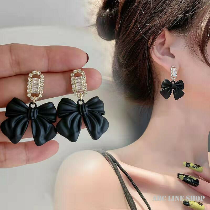 ピアス リボン 垂れ下がり きらきら 両耳用2つ入り 華やか ブラック/レッド 上品 お洒落 結婚式 パーティー 可愛い 存在感あり レディース 人気ピアス