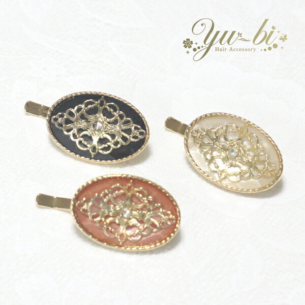【1870円以上ゆうパケット送料無料】ポニーフック/アンティーク調 楕円 ラメ入り きらきら コンチョ風 ゴールド飾り細工 pn58☆白/ピンク/黒 丸 ヘアカフス ヘアアクセサリー 髪飾り ヘアゴム ヘアピン ヘアアレンジ