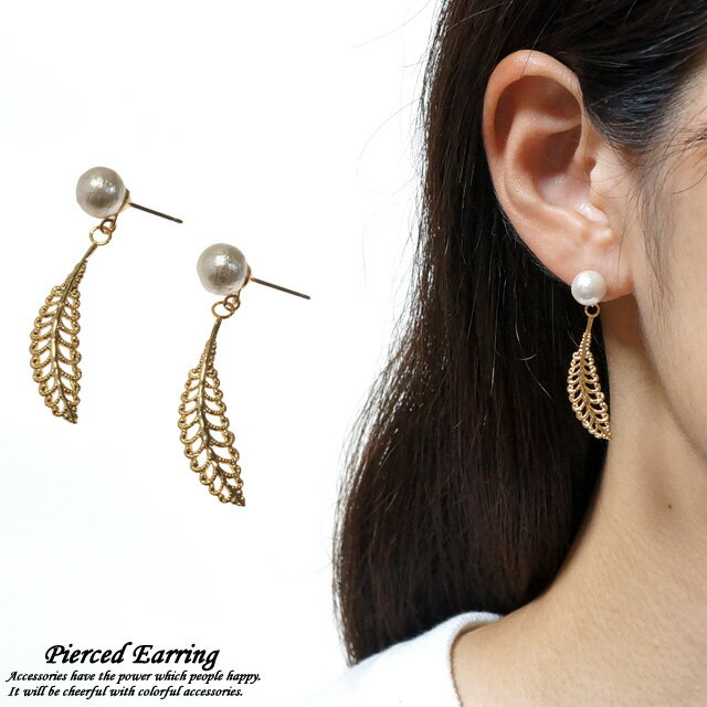 \半額★50%OFF/レディースピアス コットンパール フェザー 羽根 キラキラ きらきら サージカルステンレスポスト スタッドピアス 金属アレルギー対応