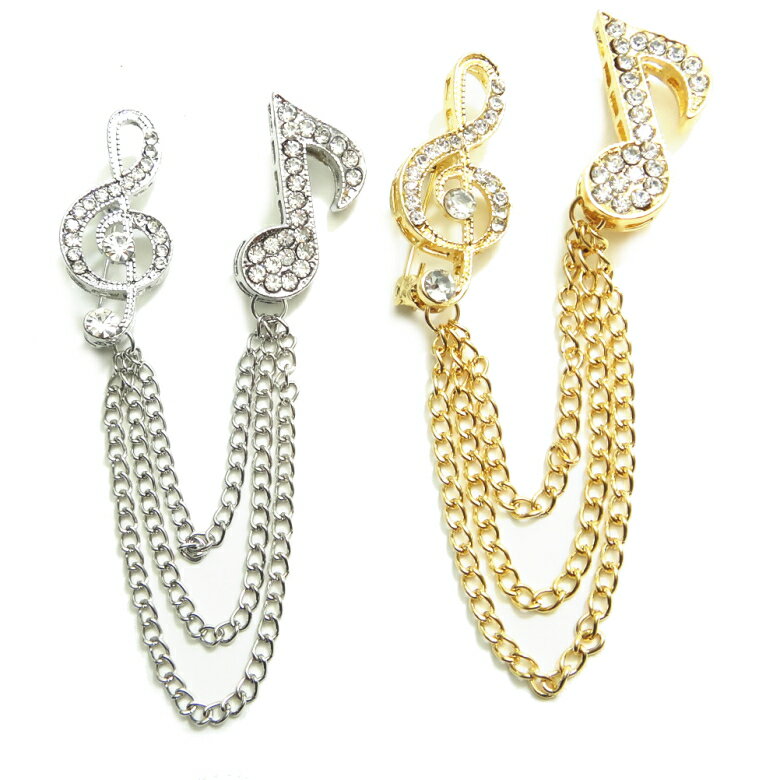 ラペルピン メンズ 結婚式 ラペルピン メンズ 結婚式 全2色 ト音記号 三連チェーン 音符 きらきらストーン チェーン ラペルピン ブローチ