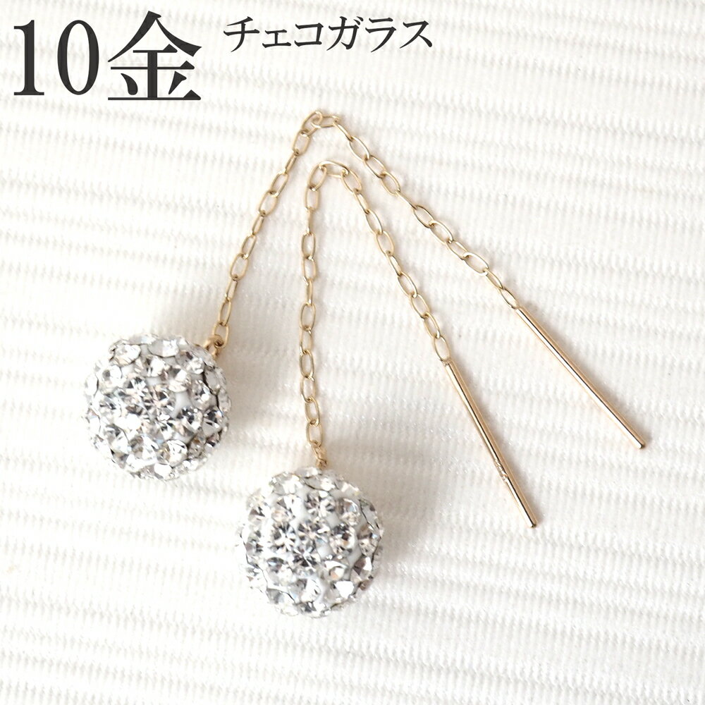 10k アメリカンピアス 揺れる 10金 10k チェコガラス きらきら チェーンピアス ぶら下がり ゴールド プレゼント レディース クリスマス