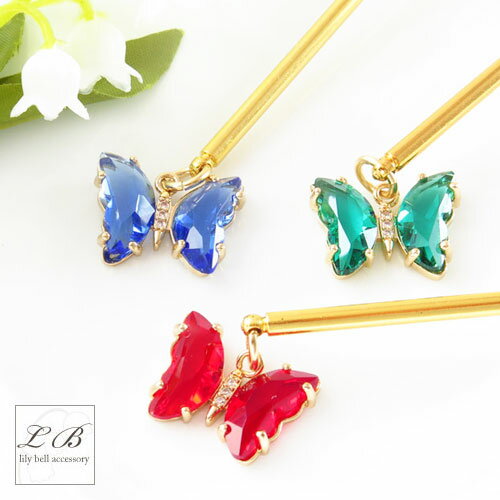 かんざし簪/日本製/1本足かんざし簪/きらきらガラス蝶々バタフライゴールドシルバースティック夜会巻きお箸一本挿しかんざし 赤レッド 青ブルー 緑グリーン 普段使い 洋風 ヘアアクセサリー シニヨン 浴衣 まとめ髪 髪飾り 追跡可能メール便対応 sa