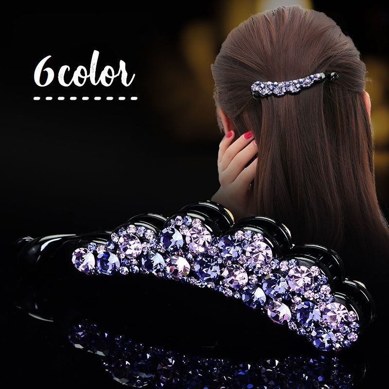 送料無料 ヘアクリップ バナナクリップ レディース 女性 ヘアアクセサリー ラインストーン きらきら 髪留め 髪飾り まとめ髪 ヘアアレンジ 簡単 かわいい シンプル 上品 華やか キュート お出かけ 通勤 オフィス パーティ 青 紫 シャンパン カラフル