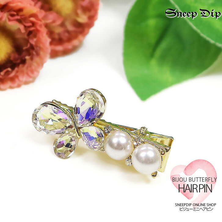 送料無料 バタフライ×パールヘアピン クリップ ヘアアクセ ヘアピン きらきら ワニ口 髪アクセ ワンポイント ピン キュート かわいい ティーン ビジュー プチギフト キラキラ パール ミニ 小さいピン フェミニン ガーリー パールピン