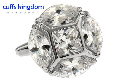 大粒 きらきら 豪華 丸形 カフスボタン ( 銀 ) 【 銀色系 男女 カフリングス 営業マン おしゃれ かわいい 結婚式 カジュアル ゴージャス スーツ 人気 プレゼント ギフト 入園式 入学式 成人式 】