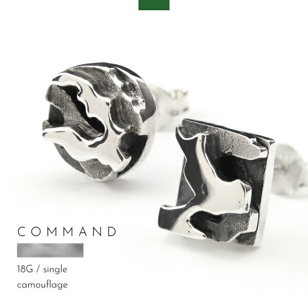 ピアス メンズ ラウンド スクエア 迷彩 シルバー925 コマンド 送料無料 カモフラ ミリタリー BOX付き ギフト COMMAND