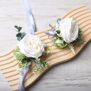 ウェディング リストコサージュ ブートニア 花嫁 ブライズメイド 新郎 グルームズマン ヨーロッパ風 結婚式 披露宴 造花 ホワイトローズ 胸飾り 手首飾り