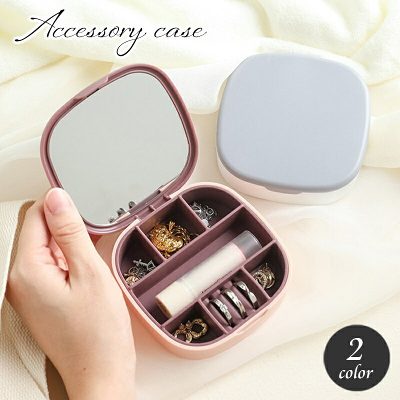 送料無料 アクセサリーケース ジュエリーボックス スクエア 携帯 小物入れ コンパクト ミラー付き 鏡 持ち運び 旅行 お出かけ 仕切り リング 指輪 ネックレス イヤリング おしゃれ かわいい