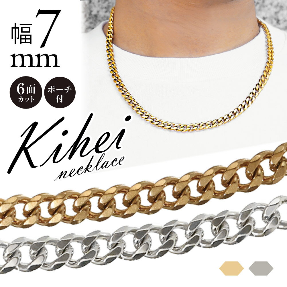 Qroza クローザ 喜平 ネックレスチェーン 7mm幅 6面カット シングル ごつめ 太め サージカルステンレス ゴールド シルバー 18金メッキ 収納ポーチ 付 重厚 太め メンズ ネックレスチェーンのみ 【送料無料】