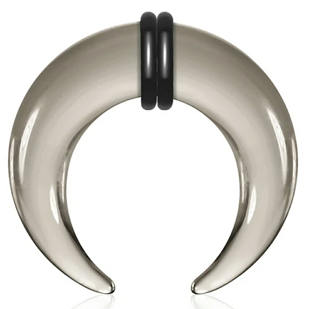 灰色グレーのバッファローの角のような形状のボディピアス。 先端に行くほど細く、真ん中が太い拡張器のような形なので、装着もしやすく、ゴムキャッチも黒色と透明が各2個ずつついているので、装着場所によってキャッチを付け替えれる。透き通る透明感と清潔感のあるガラスのボディーピアスは男性からも女性からも人気。イヤーロブやへリックはもちろん、鼻ピアスのセプタムにも使えるボディピアス。ガラス製なので、金属アレルギーの心配もない金属アレルギー対応ボディピアス。メンズでもレディースでも使えるのでペアルックやプレゼントにも最適です。 サイズは14G(14ゲージ)、12G(12ゲージ)、10G(10ゲージ)、8G(8ゲージ)、6G(6ゲージ)、4G(4ゲージ)、2G(2ゲージ)、0G(0ゲージ)、00G(00ゲージ)から選べます。 (ご購入の際のご注意) ・ガラス製なので、衝撃などで破損する恐れがございますので、ご注意ください。ご使用前に、傷やひびがないか十分に確認しご利用ください。当社では出荷後の破損につきましては、責任を負いかねますことをご了承くださいませ。 [スペック]14ゲージ(1.6mm)/ 12ゲージ(2mm)/ 10ゲージ(2.5mm)/ 8ゲージ(3mm)/ 6ゲージ(4mm)/ 4ゲージ(5mm)/ 2ゲージ(6mm)/ 0ゲージ(8mm)/ 00ゲージ(10mm)[素材]ガラス[備考]・表示は1ヶの価格です。・写真はイメージです。お客様のモニターにより商品の色やイメージが異なる場合があります。・スペックサイズは目安としての参考値です。多少誤差がある場合がございますので予めご了承ください。