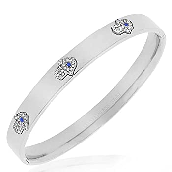 【中古】【輸入品・未使用】My Daily Styles ステンレススチール ホワイト ブルー CZ ハムサ 幸運 バングル ブレスレット 7.5インチ%カンマ% ステンレス鋼%カンマ% キュービックジ