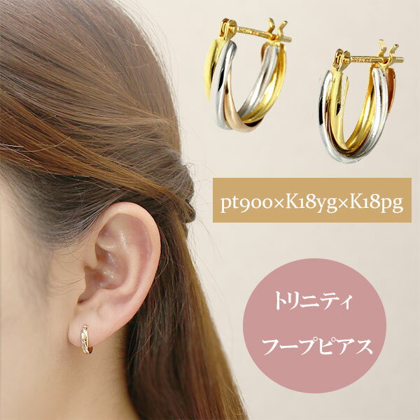 18金 ピアス トリニティ フープピアス 3カラー スリーカラー K18 プラチナ pt900 18k 地金 コンビ カラー トリコロールカラー おしゃれ 品質保証書 女性 レディース ジュエリー アクセサリー プレゼント ギフト 送料無料 SSS