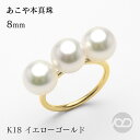 【ポイント10倍 10/27 9:59まで】18k パール リング 普段使い k18 18金 イエローゴールド スリーパール 真珠指輪 あこや アコヤ 本真珠 8mm 3個付 シンプル 重ね着け カジュアル フォーマル 華奢 エタニティ プレゼント ギフト ジュエリー ハロウィン