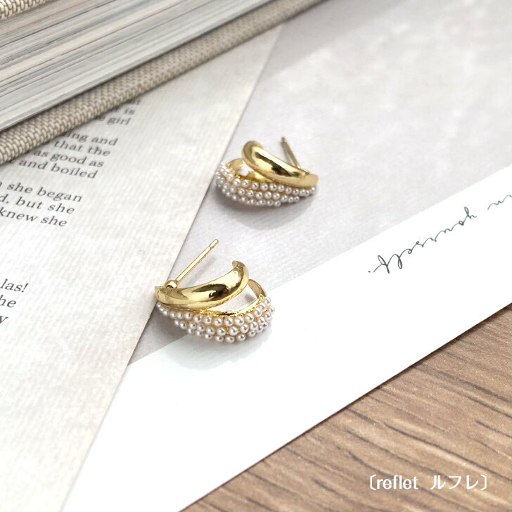 商品情報素材合金人工パールサイズ1.6cm商品在庫について当店の商品は実店舗でも販売しているため、ご注文のタイミングによっては商品が在庫切れとなる場合がございます。ご了承ください。注意モニターの都合上、掲載写真と実際の色が異なる場合がございます。当店のセレクトアイテムは海外製です。日本製とは異なり多少のキズ、金属表面の凹凸、金具の留のゆるみ等がある場合がございます。丁寧に検品を行っておりますが、ご理解いただいた上でのご購入をお願いいたします。【'25年9月7度目の月間優良ショップ受賞】〔reflet ルフレ〕 パールピアス アクセサリー レディース シンプル ゴールド ベビーパール 2連 プレゼント ギフト 【送料当社負担】おしゃれのワンポイントに!小粒のパールを敷き詰めたおしゃれなデザイン。着けるだけで華やかな印象に カジュアル フォーマル シンプル 人気 ギフト 上品なパールをぎゅっと詰め込んだ2連風デザインのピアスです。ころんとしたボリューム感がありながらもサイズ感は程よくデイリー使いにもぴったりです。華やかさと抜け感を両立したデザインでカジュアルからきれいめコーデまで幅広くマッチ。着けるだけで耳元がパッと華やぎます。 5