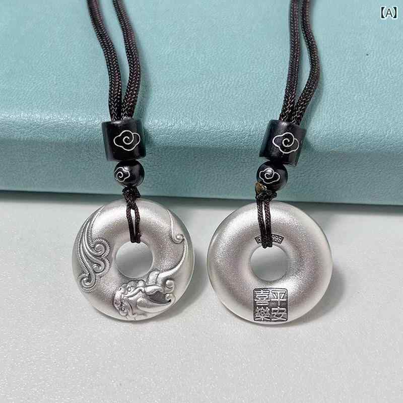 ネックレス メンズ レディース ペア 999シルバー シルバー 貔貅 平安バックル ペンダントトップ チャーム ハンドメイド 槌目模様 トレンド ファッション お守り ラッキーアイテム 普段使い カジュアル ロングネックレス