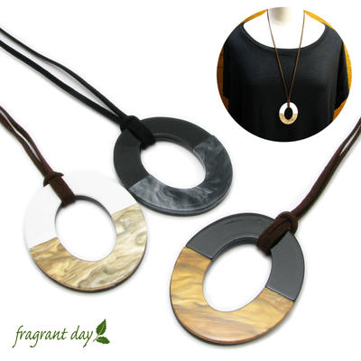 ネックレス レディース シェル ウッド 天然 レザーネックレス リバーシブル 木製 オーバル シンプル ナチュラル ロング【fragrant day】KN53201