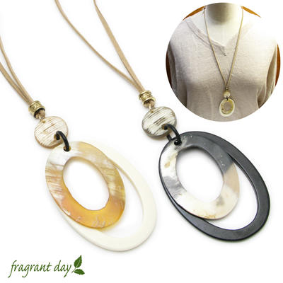 ネックレス レディース 天然素材 オーバル レザーネックレス水牛の角 ナチュラル 【fragrant day】ペンダント KN48023
