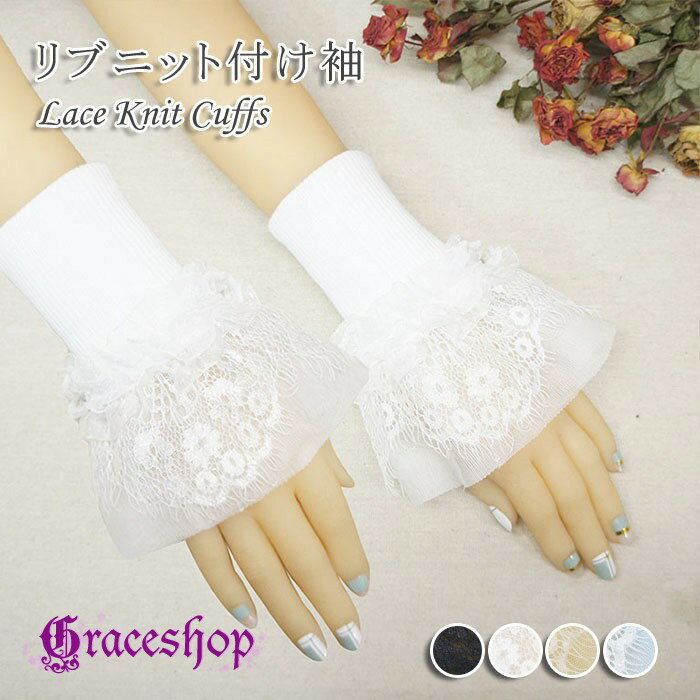 レース 袖口 付け袖 レディース リブニット カフス フリル レイヤード 重ね着風 手首カバー つけ袖 袖アクセサリー フェミニン ロリータ 甘め コスプレ 衣装 舞台 ステージ 演奏会 発表会 ブラック ホワイト nb005x1x1sa