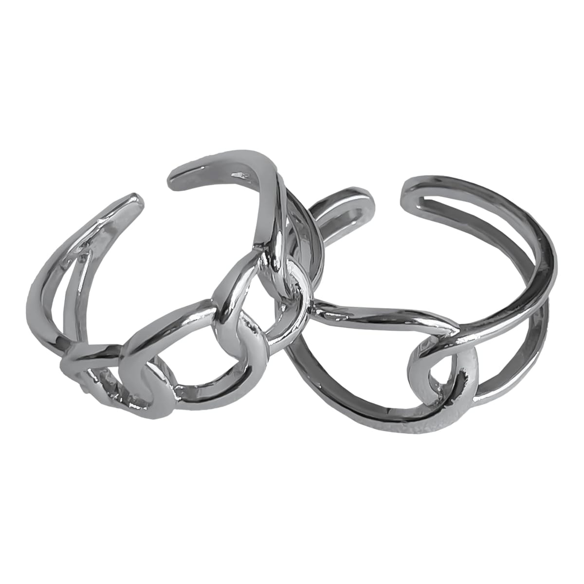 指輪 レディース リング 2個セット アクセサリー 太め フリーサイズ サイズ調整可能 重ね付け 人差し指 錆びにくい アレルギー対応 (シルバー)