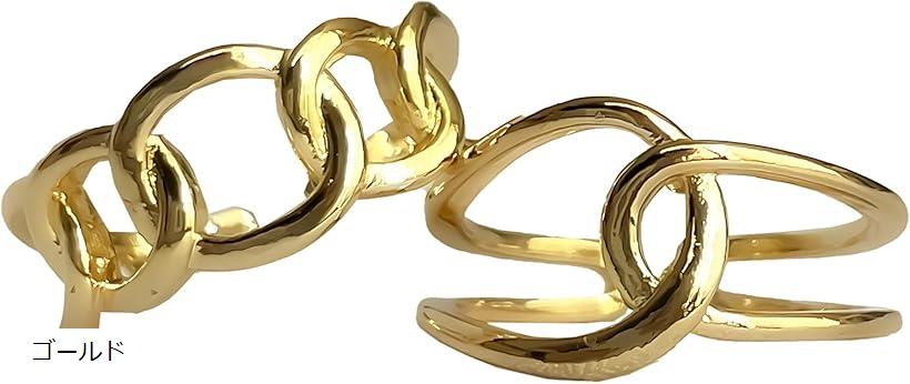 指輪 レディース リング 2個セット アクセサリー 太め フリーサイズ サイズ調整可能 重ね付け 人差し指 錆びにくい アレルギー対応 (ゴールド)