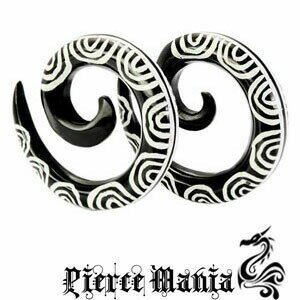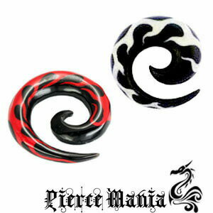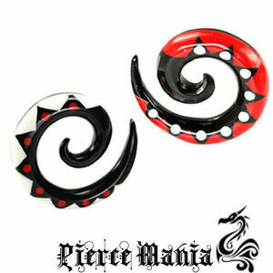 《在庫限り》00g 人気の3カラースタッズ!赤x黒x白スパイラルピアススパイラルピアス ホーンピアス★ボディピアス 拡張器 イヤーロブ 天然素材 バッファロー