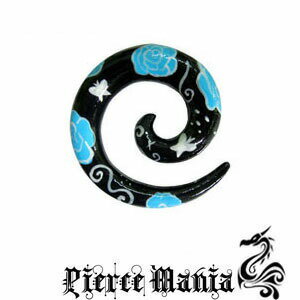 《在庫限り》12mm ブルーローズ&ホワイトバタフライ スパイラルピアス ホーンピアス★ボディピアス 拡張器 イヤーロブ 天然素材 バッファロー
