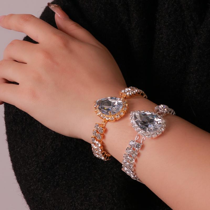 ブレスレット メンズ レディース ジルコニア ラインストーン ティアードロップ 水滴 幾何学 2連 パーティー 結婚式 お呼ばれ シルバー ゴールド 電気メッキ加工 高級感 アクセサリー ジュエリー オーバル フォーマル
