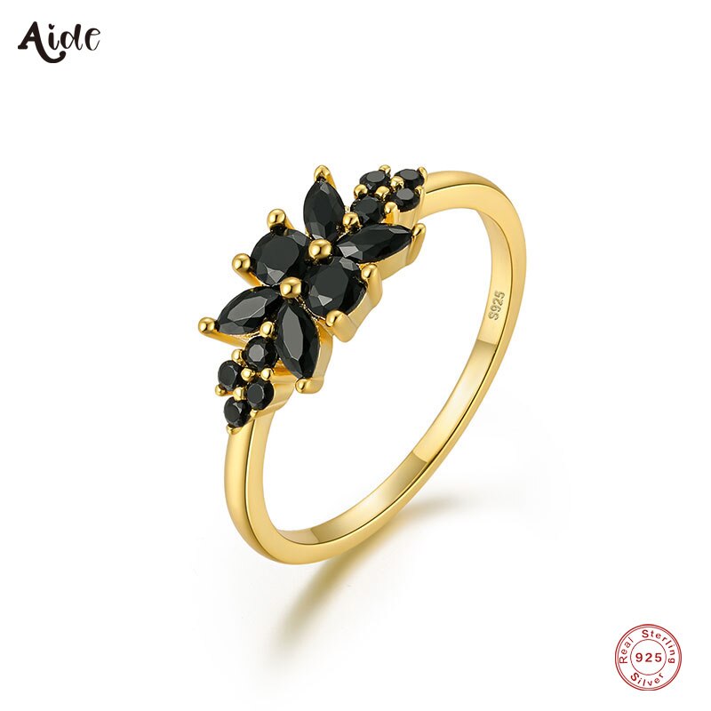 【送料無料】 指輪 リング 黒 ブラック 花 フラワー ジルコニア ビンテージ ブライダル シルバー レディース 女性 925 スター 星リング ジルコン 結婚式 ウェディング ヨーロッパ ユニーク 気質 ジュエリー