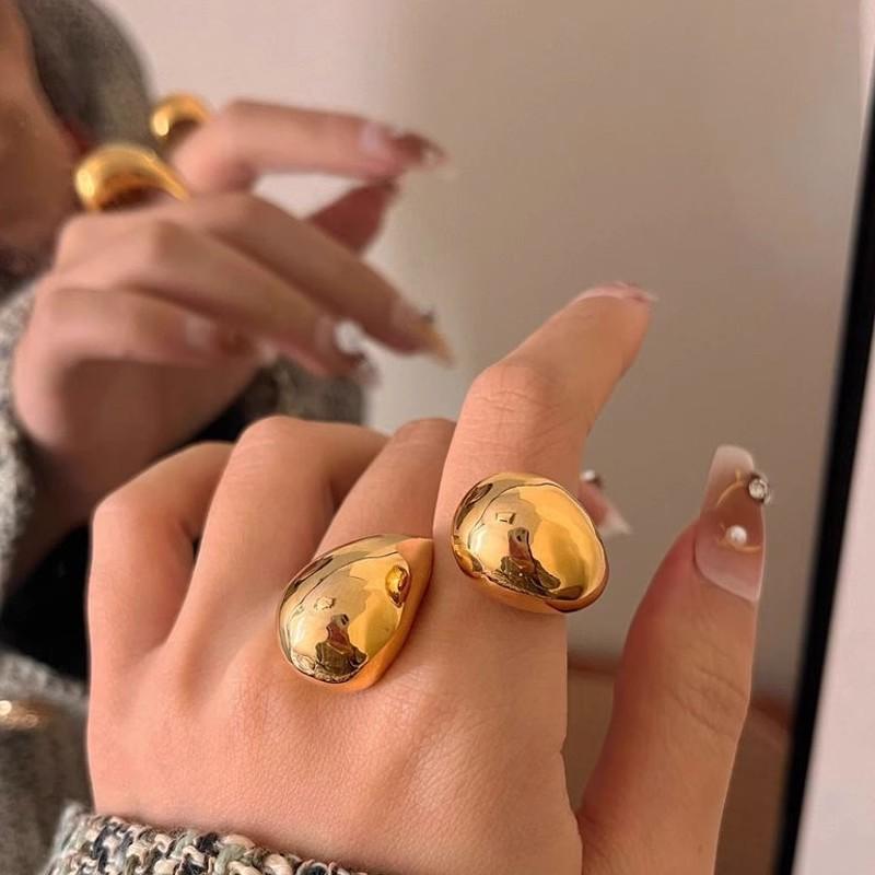 指輪 レディース ヨーロッパ ユニーク 金銀2色 鏡面 水滴型 ティアドロップ フランス風 軽やかな高級感 重厚感 フリーサイズ オープンリング スタイリッシュ 華やか 合金製