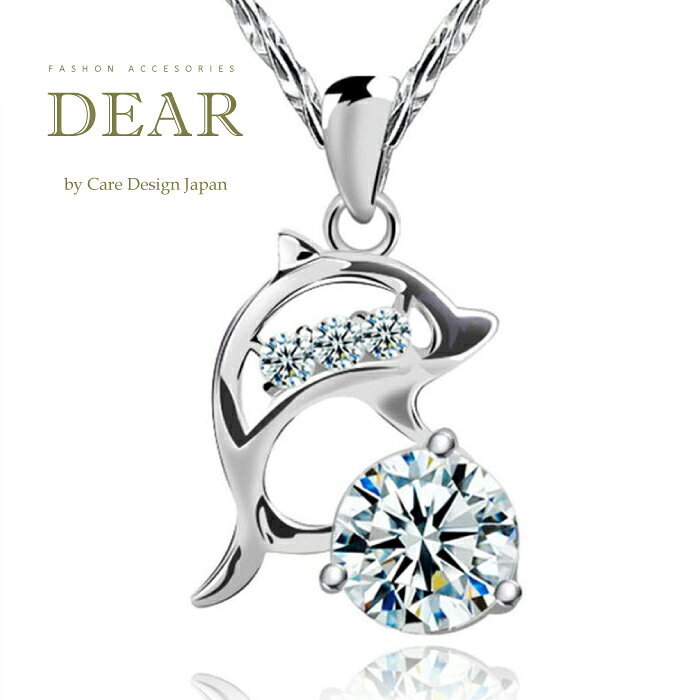 【送料無料 箱付き】 J ドルフィン ジルコニア ネックレス シルバー かわいい おしゃれ デザイン プレゼント ギフト パーティー ドレス 結婚式 記念日 お祝い 贈り物 レディース 女性 ジュエリー アクセサリー ストーン 人口 ダイヤ 冠婚葬祭 エレガント