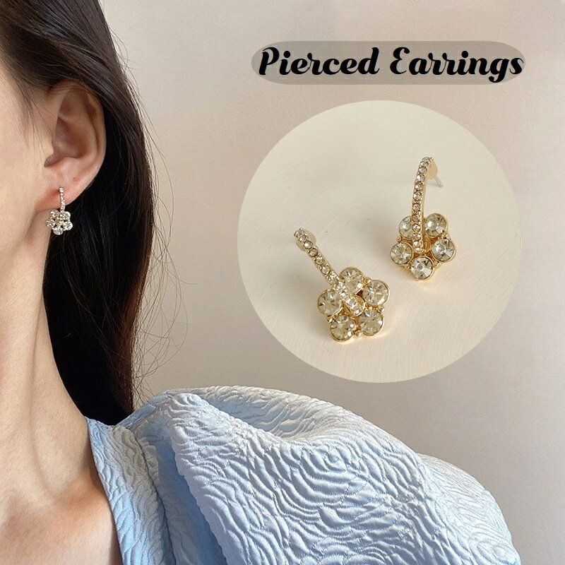 送料無料 スタッドピアス レディース アクセサリー ハーフフープ C型 ラインストーン 花 フラワー 華奢 キラキラ シンプル カジュアル フォーマル かわいい おしゃれ プレゼント ギフト 贈り物 お祝い 記念日 誕生日 デート 女子会 パーティー 入学 卒業 お呼ばれ お出かけ
