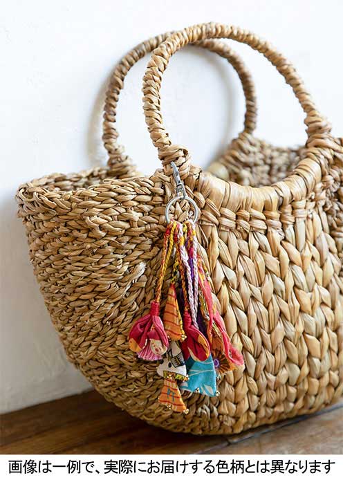 ※リサイクルサリーを使用しているため、すべては一点ものとなり、色や柄のご指定をいただくことができません。あらかじめご了承ください。チャームがたくさんついたキーホルダーです。リサイクルサリーでつくられているので、どんな色柄が届くかはお楽しみ。カラフルで目立つので、カバンの中で迷子にならずに済みます。●コットン(リサイクルサリー)、ガラスビーズ/メタルリング/サシャ・ハンディクラフト/インドよりタテ約16cm、チェーン:4cm※この製品は強い摩擦や水分等の付着により、色落ち・色移りする恐れがあります。ご使用の際はご注意ください。※ラッピングをご希望の方は こちら よりラッピングサービス(税込550円)をご追加ください。