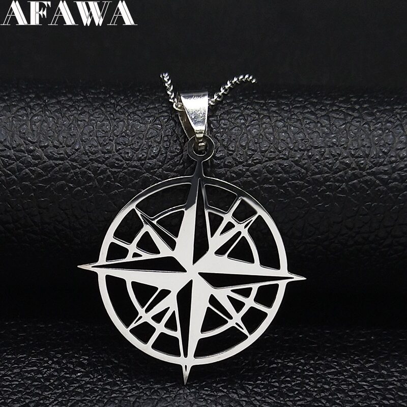 【送料無料】 ネックレス ステンレス シルバー チェーン レディース 女性 ファッション シーカー コンパス スチール カラー 旅行 トラベル フェンダー ジュエリー