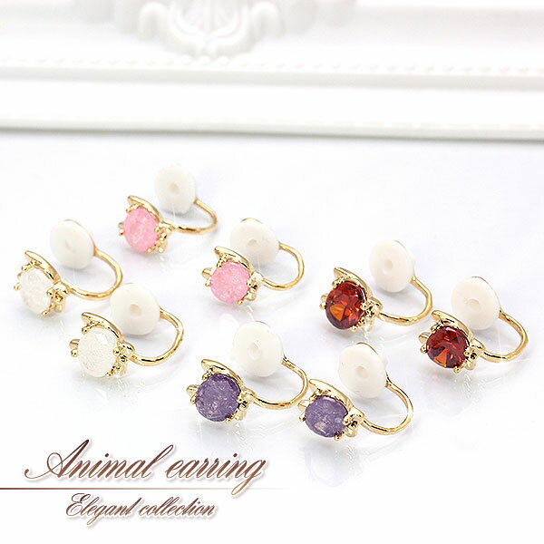 揺れるたびキラキラ★一粒輝くイヤリングです。 イヤリング金具は幅を自由に調節でき、シリコンカバーが付いているから痛くなりにくい♪拘りのデザインです。 パーティー等で耳元を華やかに演出します♪ キュートなネコのイヤークリップです。 ピンク・ホワイト・パープルはクラック入りで繊細な輝き♪ レッドは透明感のある印象的な輝きです♪ ■商品詳細 商品管理番号:SL-1305 サイズ:猫部分9×8mm 素材:合金/ゴールド鍍金、キュービックジルコニア(ホワイト、ピンク、パープルはクラック入り)