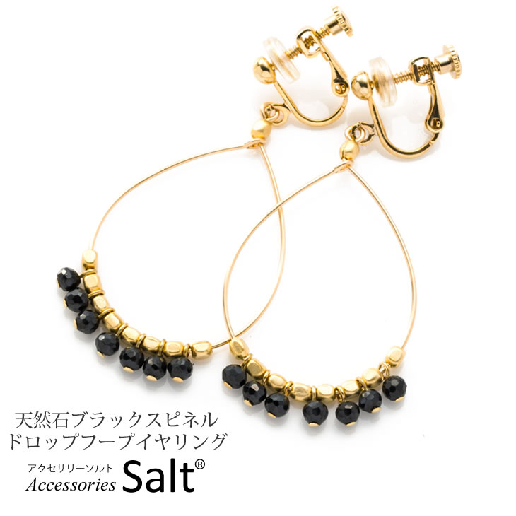 イヤリング(耳が痛くなりにくいシリコンキャップ付)商品名 ブラックスピネルK14GFドロップフープイヤリングチャームブラックスピネル1粒直径:約3mm マットゴールドビーズ(真鍮+メッキ)1粒直径:約2mmフープ部分:K14GFイヤリング真鍮+22Kメッキ(ニッケルフリー)シリコンキャップ付 縦(イヤリング部分含む):約45mm 横(最大):25mmご注文前にご一読ください。 お取り扱いのご注意アクセサリーは1つ1つハンドメイドで製作されている為繊細に出来ております。 乱暴に扱うとテグスやワイヤーが切れたり、素材やパーツにが傷ついてしまいますのでお気をつけください。 また水や汗、皮脂の付着により金属素材が変色することがございます。ご使用後は柔らかい布などで拭いてお手入れをされることをお勧めいたします。 アフターケアについて 初期不良の場合は商品到着後7日以内にご連絡下さい。無料で修理させていただきます。(送料は当店負担)
