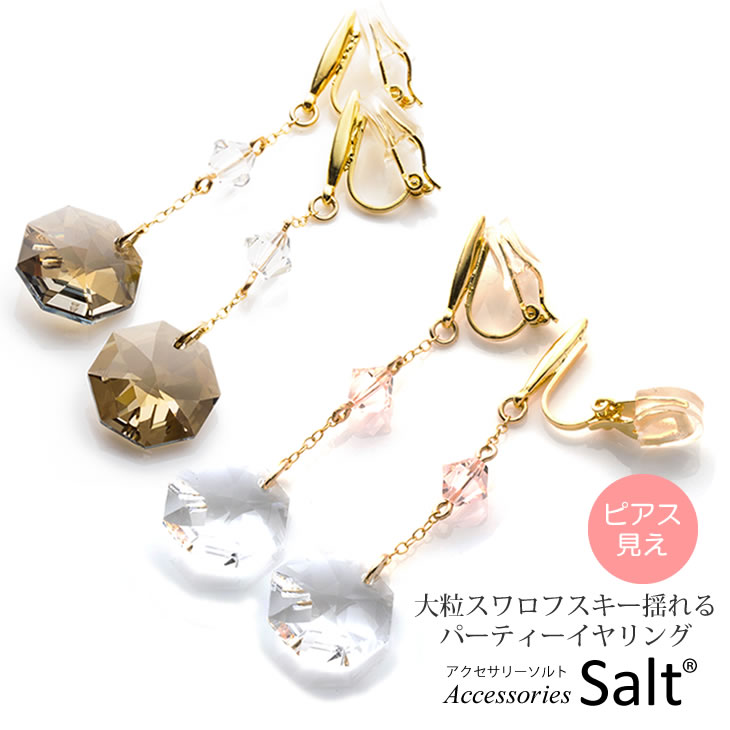 大粒 スワロフスキー 揺れる パーティー イヤリング クリップ 大ぶり レディース 金属アレルギー対応 結婚式 オシャレ おしゃれ 可愛い かわいい ニッケルフリー 二次会 クリップ式 ノンホール シリコンカバー付 クリア ブラウン 透明 人気【メール便 送料無料】【あす楽】